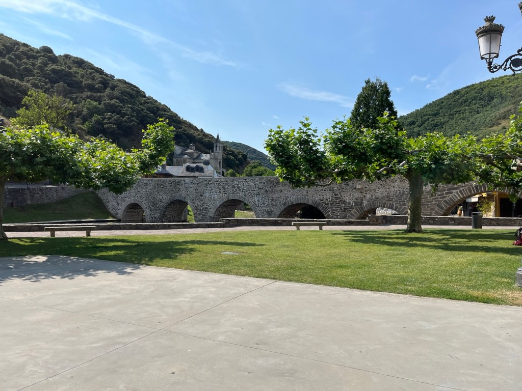 … then continued on to the Roman bridge going into Molinaseca, where the taxi driver let us out.