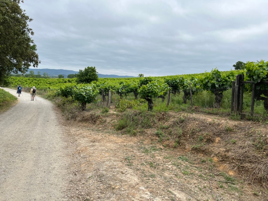 The walk from Camponaraya to Cacabelos is normally a challenge in the summer heat. Today, however, was overcast and cool and we walked and talked with a group of Canadians (Montreal) and Cristina, from Estonia, which made the time pass much faster and the walk much easier.