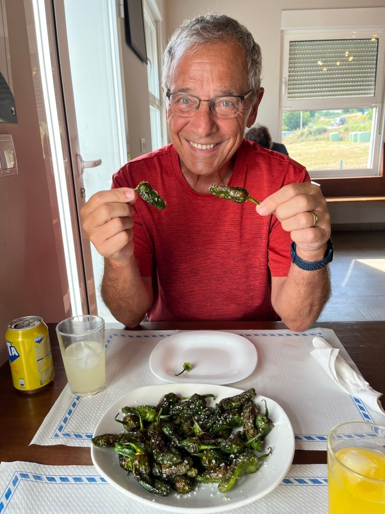 Our Padrón pepper snack. Non of these Padrons were hot. A chef in Rabanal told us the Padrón peppers in Spain were no longer hot (1 in 10 is normally hot). This was our first batch and he appears to be right, based on our sampling.