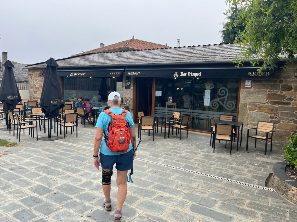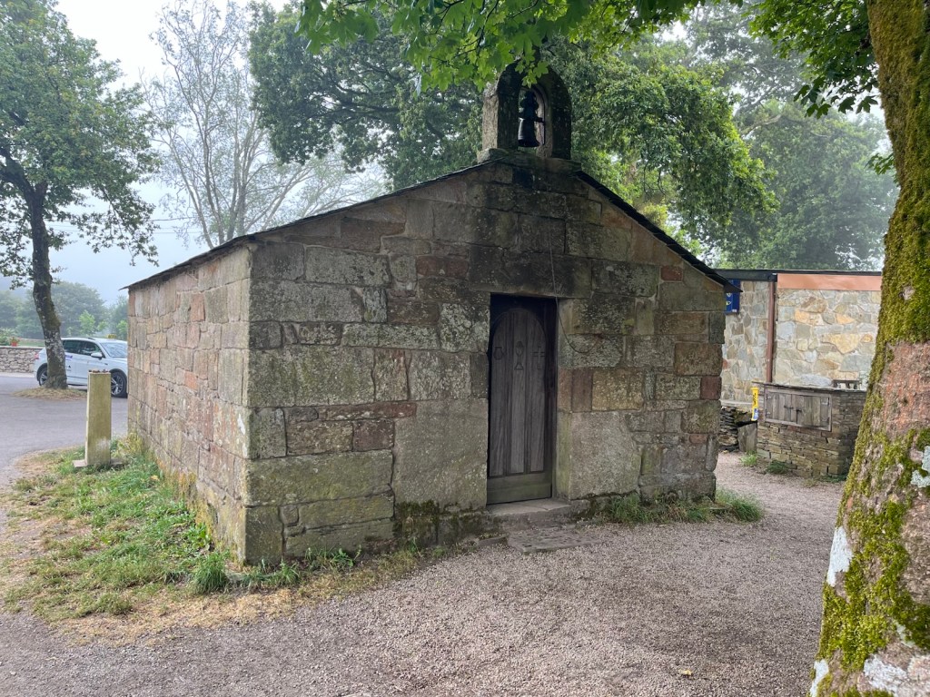 A section of ” fence” we saw as we walked along the road into Ventas de Naron.Our breakfast spot, O Cruceiro, in the village of Ventas de Naron. (pop.120).A few hundred yards from the present location of the Chapel of Mary Magdalena, a hospital was built in the late 13th century and controlled by the Knight Templar. When the Knights were eliminated, the Benedictines took it over, but by the end of the 19th century the building had collapsed and some of the stones were used by local residents to build the Chapel.Leaving Ventas