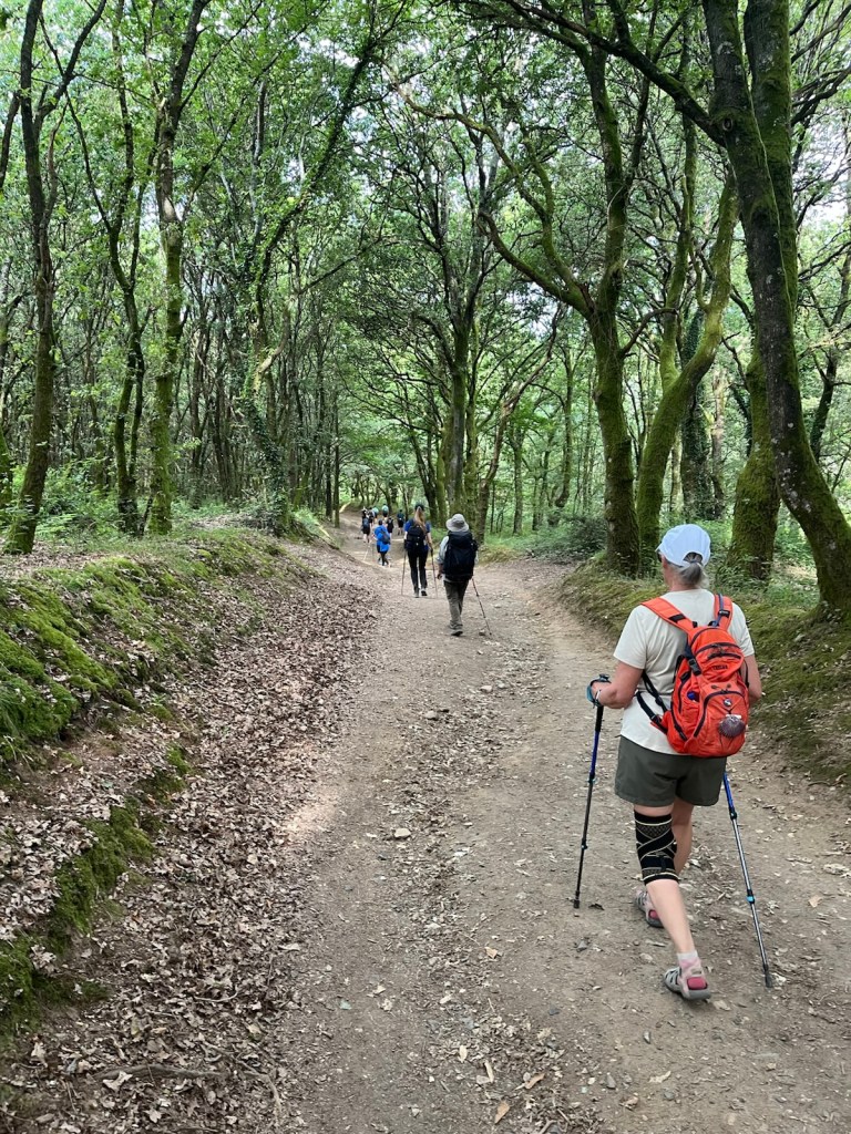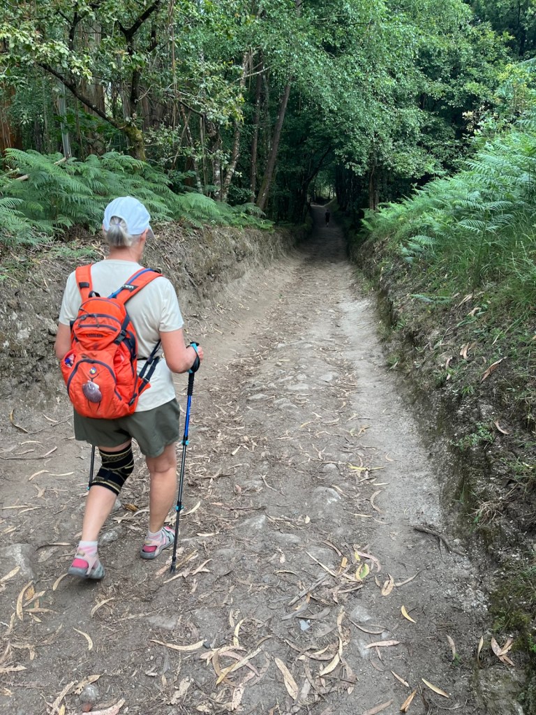 Soon after leaving Palas de Rei we began a day of “ups and downs”. Although there were a few level parts, we were either walking up a short-term steep grade or descending a path/wash riddled with rocks and erosion.