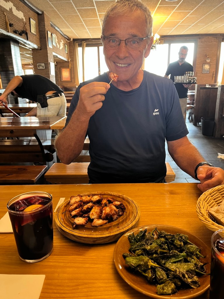Pulpo, Padron peppers and sangria fit the bill for a “light” dinner to complete a memorable day on the Camino Frances.