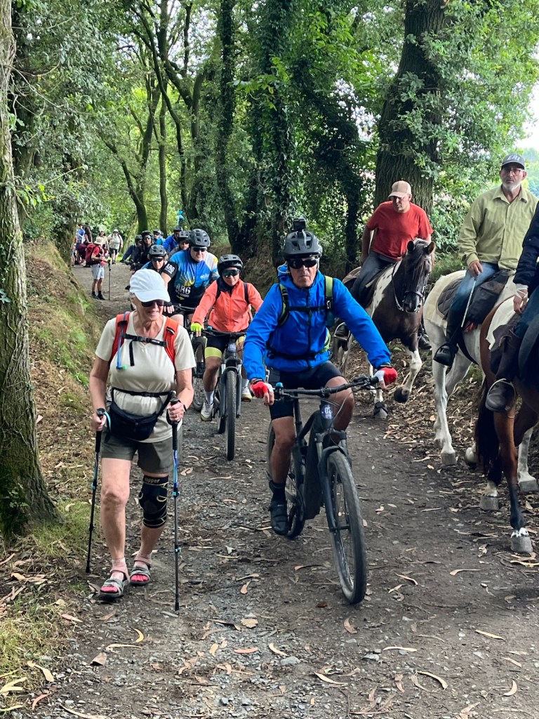 As we climbed this hill, we were overrun by walking pilgrims, horseback riding pilgrims and bicycle riding pilgrims jamming the path.