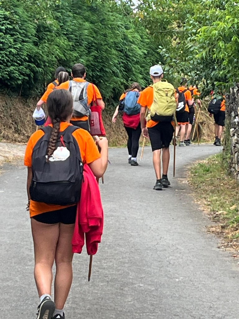 This group of 25 or so young pilgrims had matching orange shirts and worked their way past us,