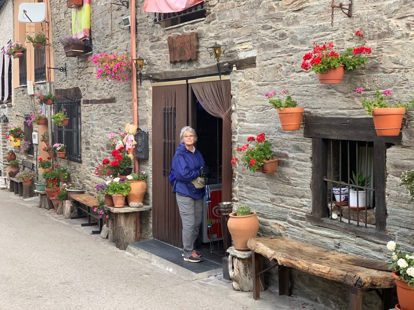 We walked through the villages of Ambesmestas (pop. 46) and the fairly large town of Vega de Valcarce (pop. 703). A shop in Vega had Camino handcrafts of every kind you could imagine for sale, but we kept walking realizing anything we bought, we would have to wear or carry.