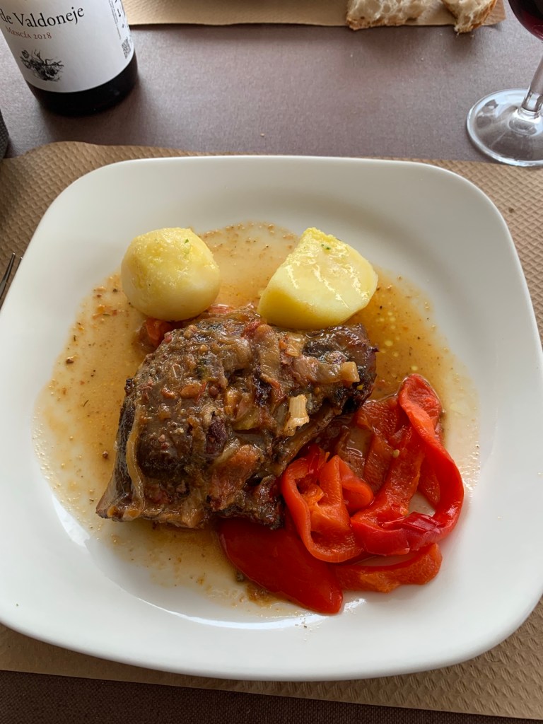 Our main course was potatoes, roasted peppers and Carrilleras (beef cheeks marinated in red wine sauce) which was delicious and literally melted in your mouth.