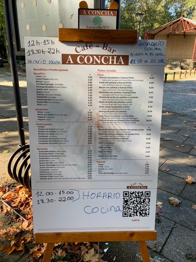 Menu our lunch restaurant Iglesia de Benaval in Lavacolla center