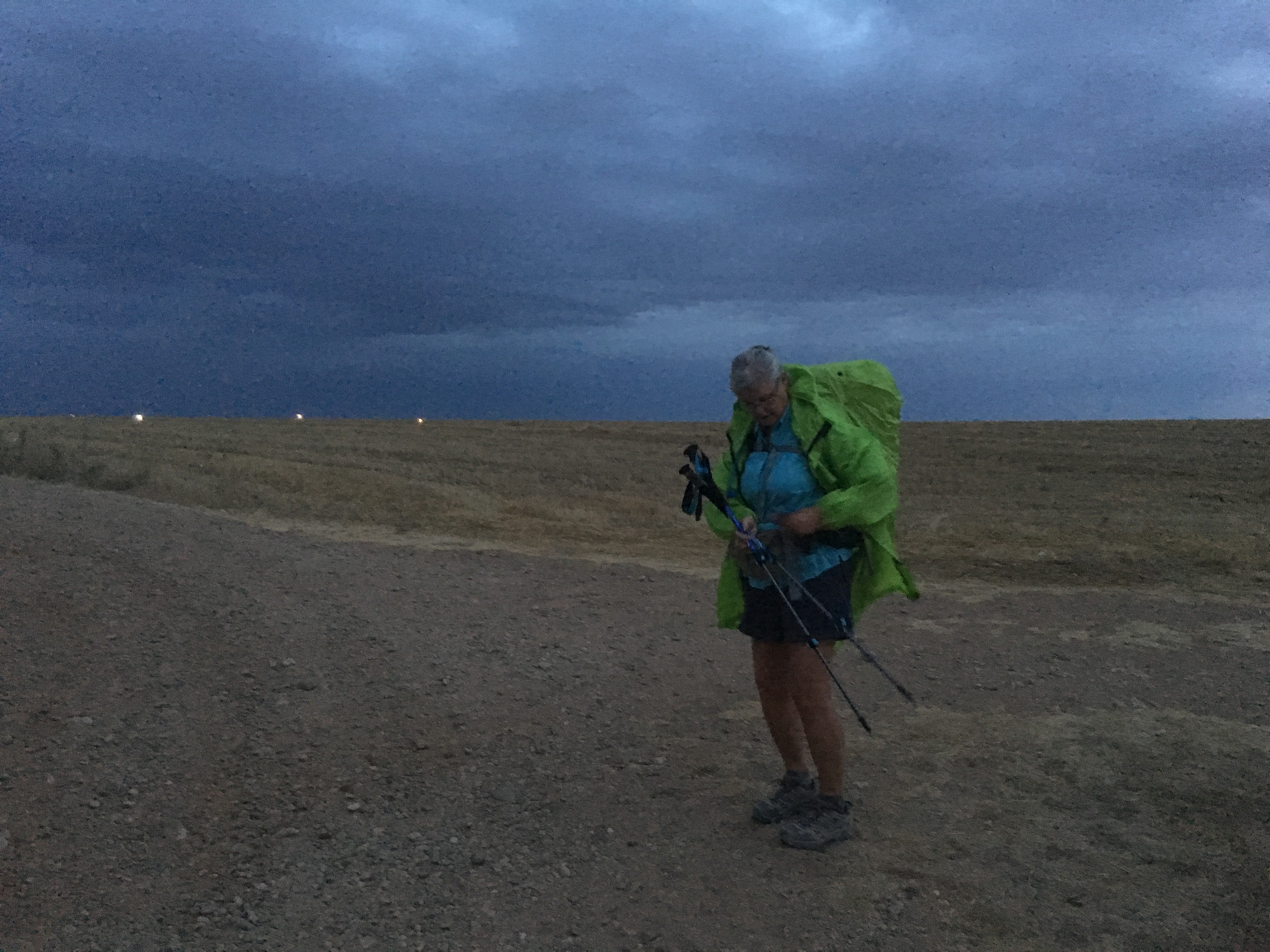 Previous Image Next Image IMG_0125 Finally back on the meseta after Hornillos del Camino. Lights are windmills.