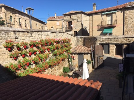 Previous Image Next Image IMG_0237 Potted flowers adorned inside wall of courtyard of Pata del Oca albergue