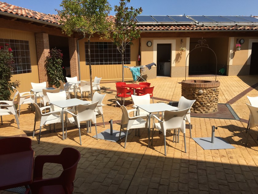 Common area of albergue, our clothes drying in background