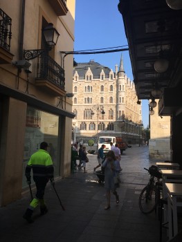 Emerging from street along Camino onto Plaza de Santo Domingo