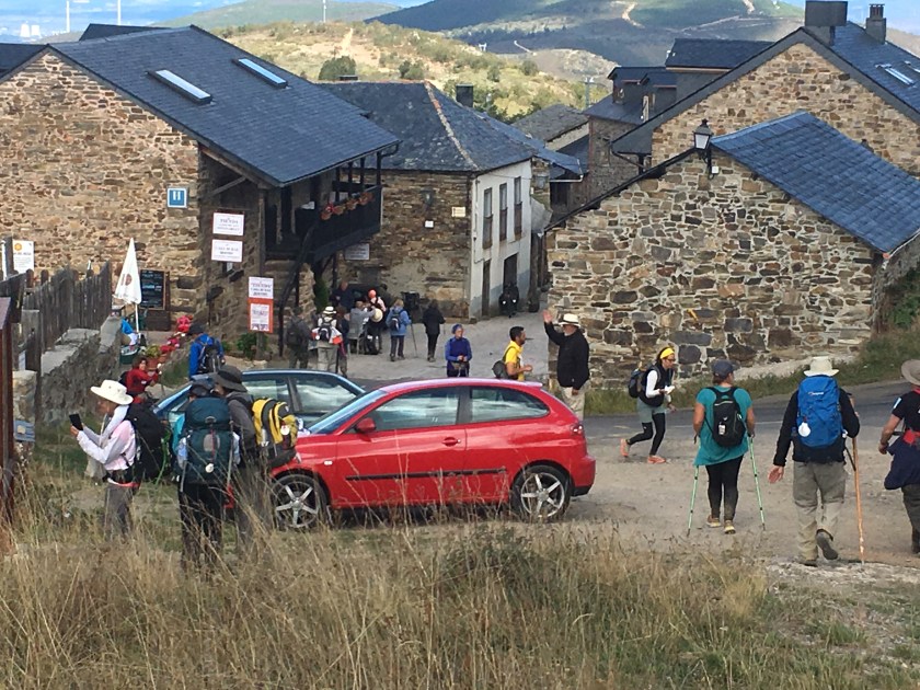 Linda waiting for Jim to make it off the downslope into El Acebo