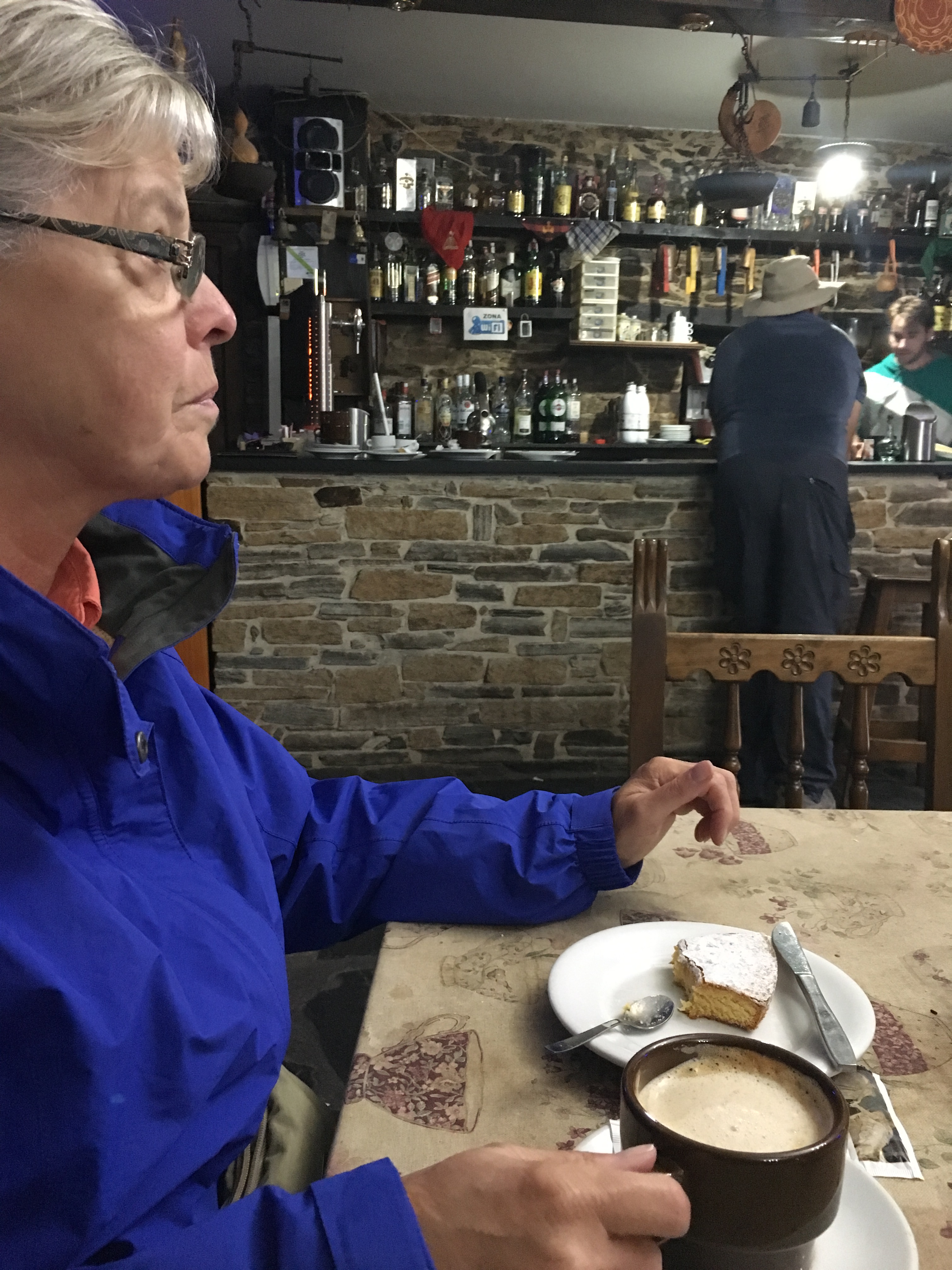 Previous Image Next Image IMG_1391 A stop for breakfast and Santiago cake to go with our cafe con leche