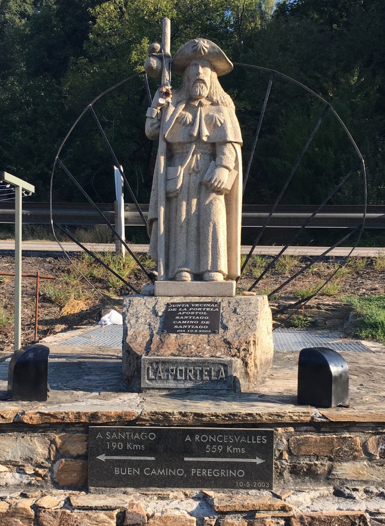Previous Image Next Image IMG_1427 Peregrino statue in Portela de Valcarce marking “only” 180 km (112 miles) to Santiago.