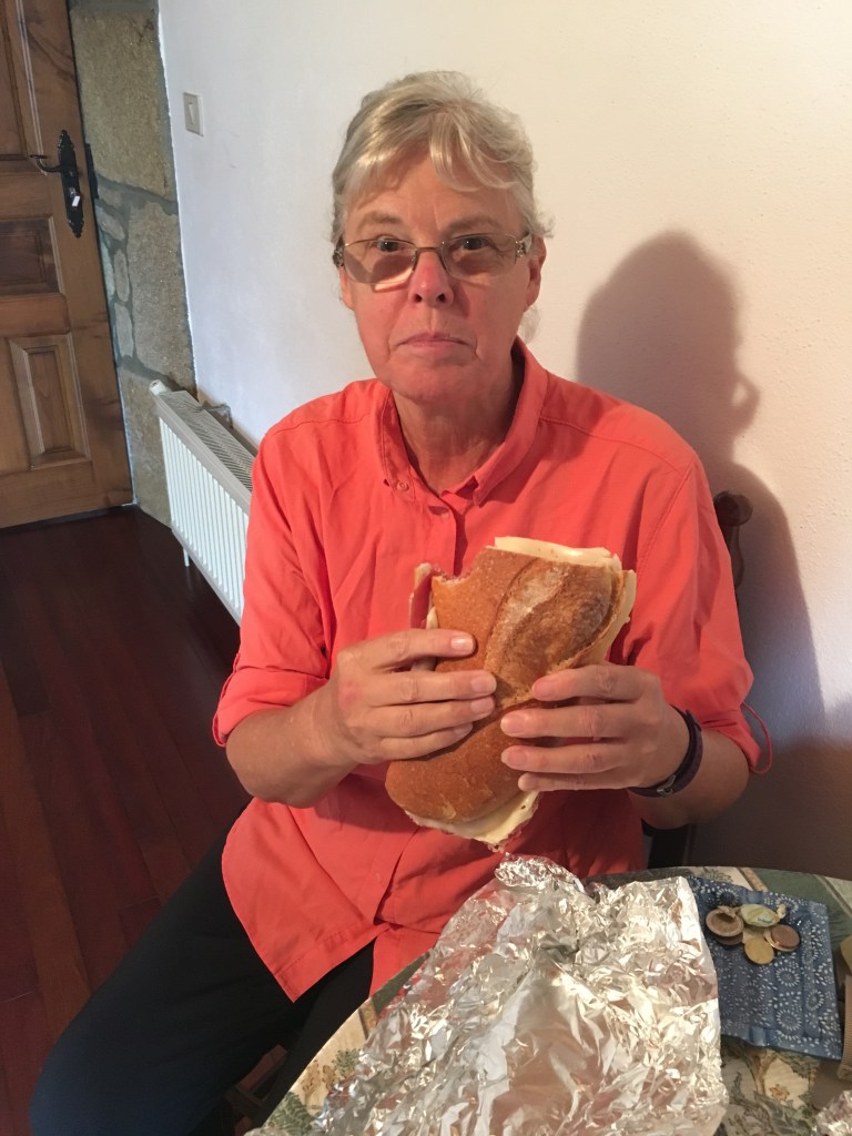 Previous Image Next Image IMG_1758 Linda working on huge bocadillas we bought in Barbadelo and carried to Casa Nova