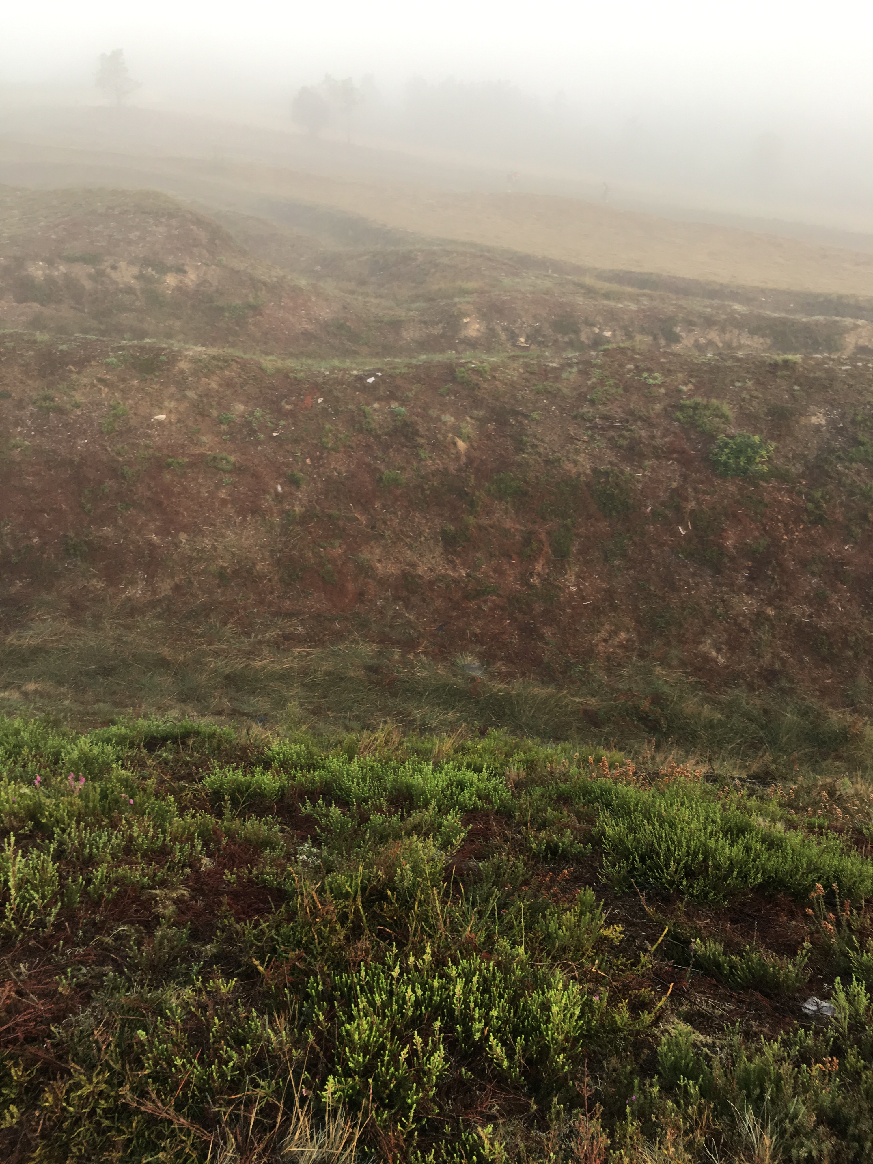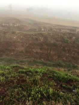Previous Image Next Image IMG_1940 Looking down on 20 ft moat/gully between center of fort mound and next outer mound and a third mound on background.