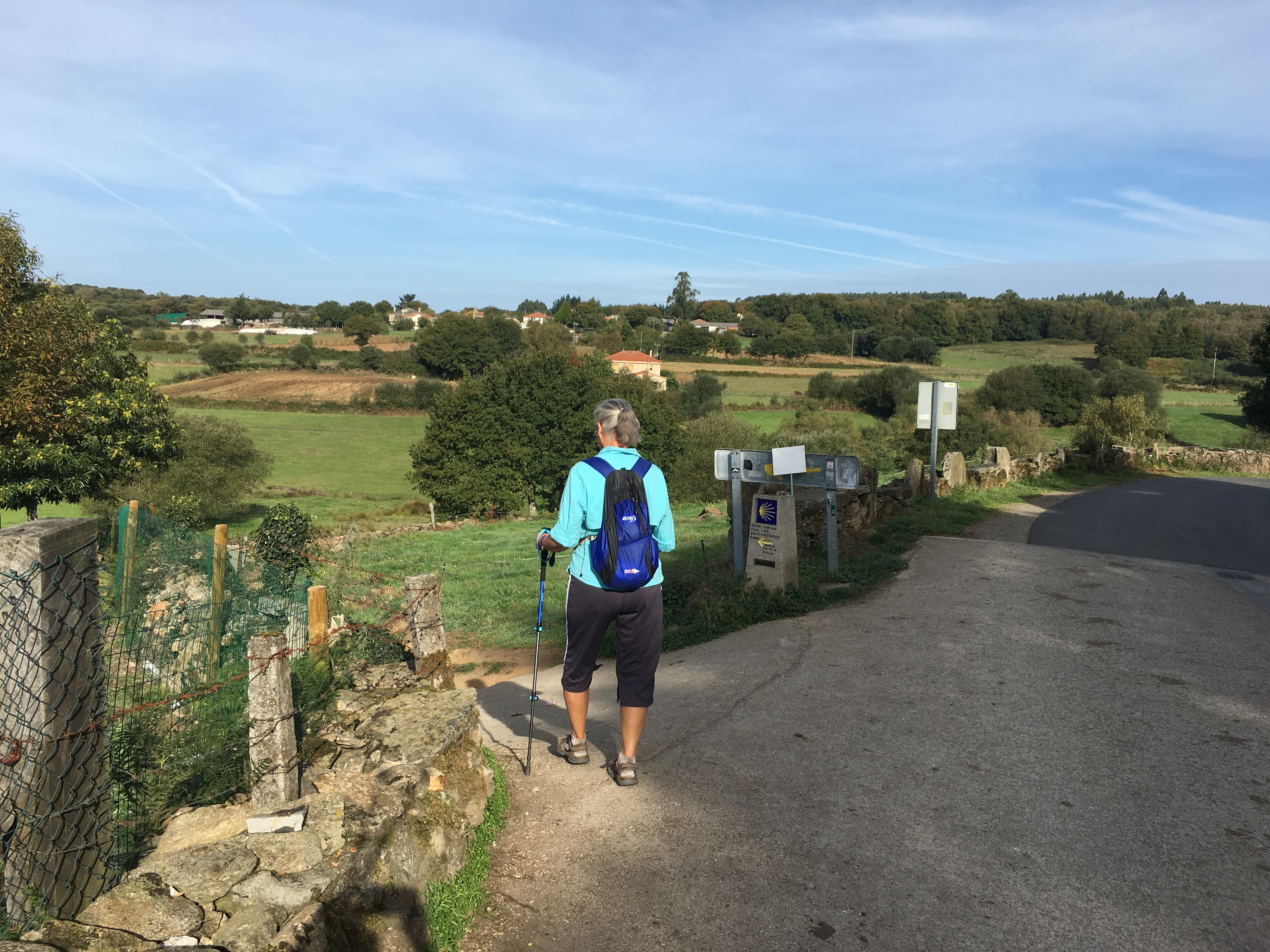Previous Image Next Image IMG_1963 Back onto a short section of path to join another road through farms just before Portos (pop. 2)