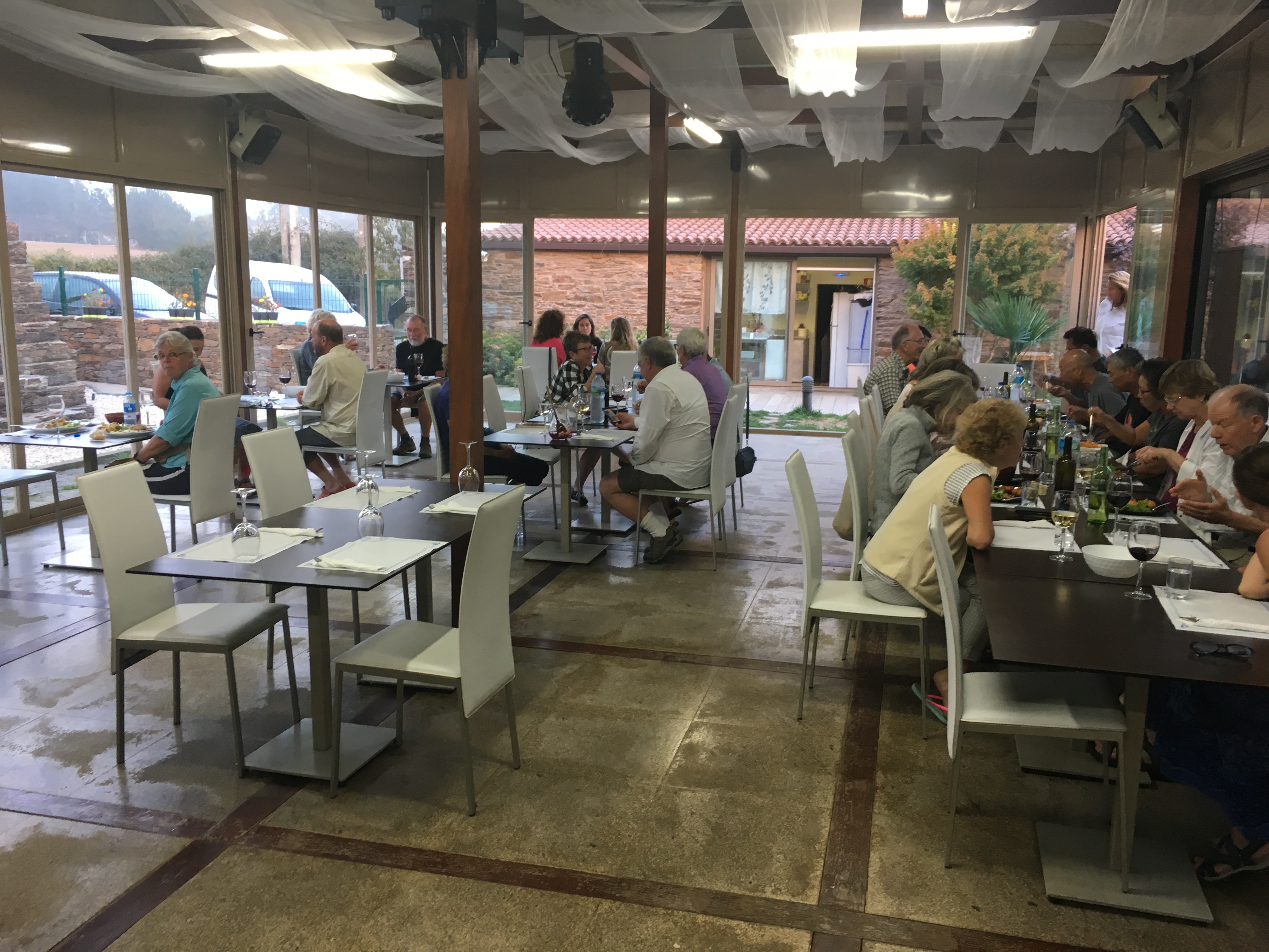 Previous Image Next Image IMG_2211 Dinner in the Pousada de Salceda main dining room (34 pilgrims served promptly by Owner, wife and daughter & two cooks)