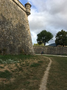 Imposing Pamplona Fortress wall- that’s Linda standing at corner.