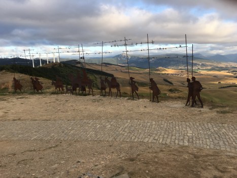 Pilgrim statutes at the top of Alto de Perdon