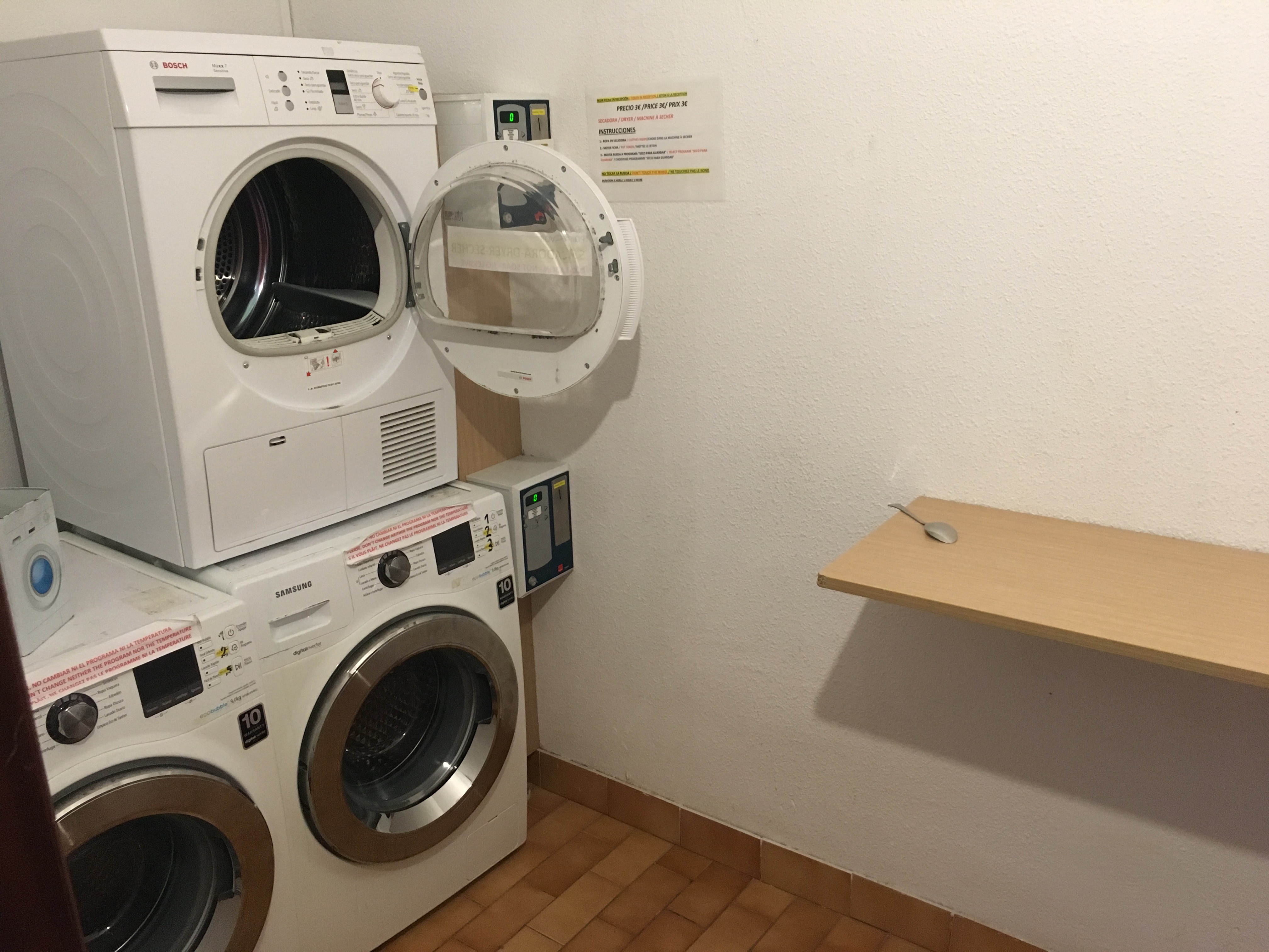Laundry area to wash (2€) or dry (3€) clothes