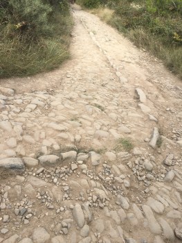 Previous Image Next Image IMG_8617 A sharp turn downhill on the Roman road. The stones in center probably prevented wheels from slipping off road on banking turn.