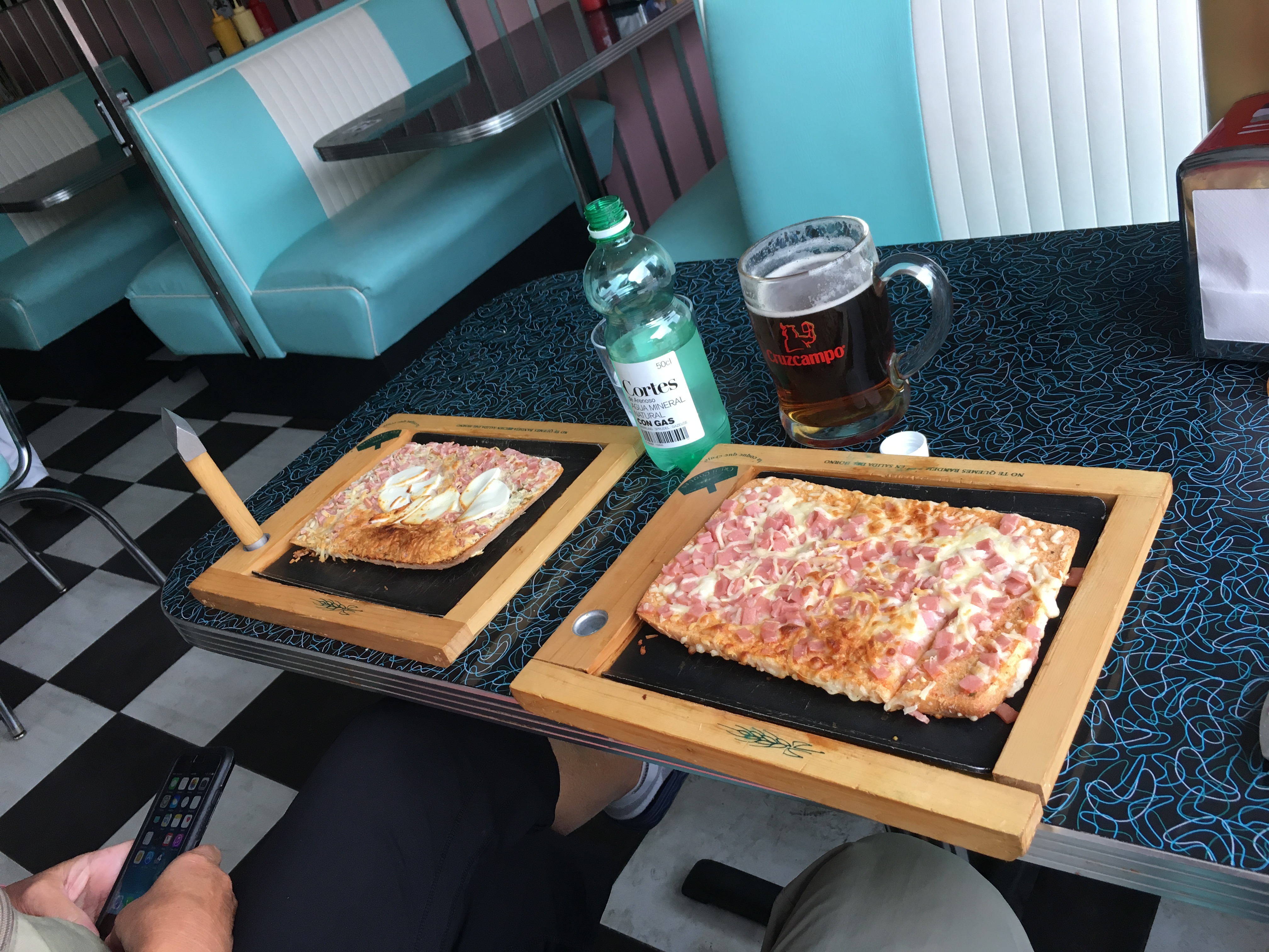 Previous Image Next Image IMG_8764 Spanish pizzas (Cruji Coques) for lunch… at the American Diner overlooking the square where many of festivities were happening.