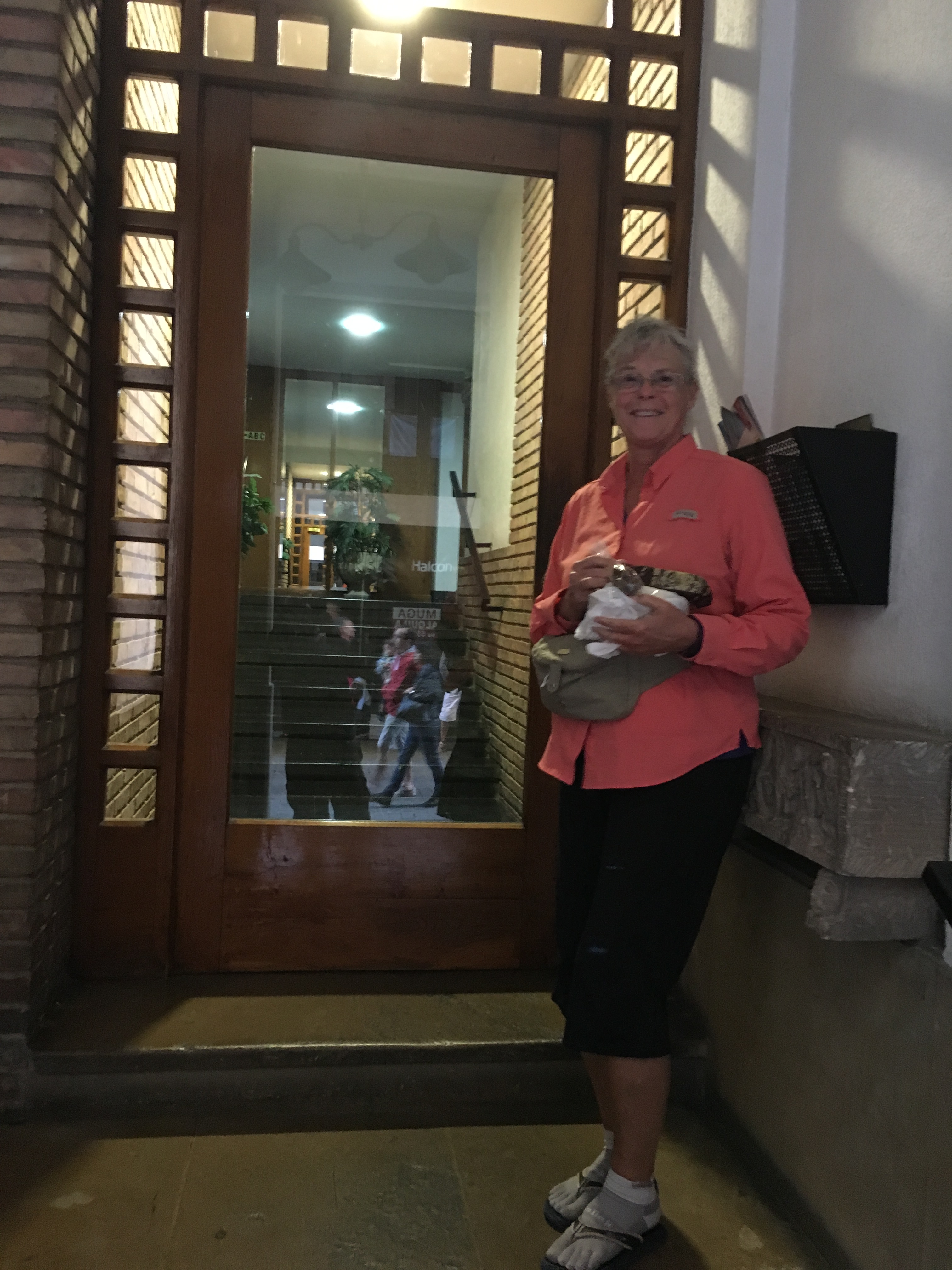 Outside door to building housing Hotel Cristina