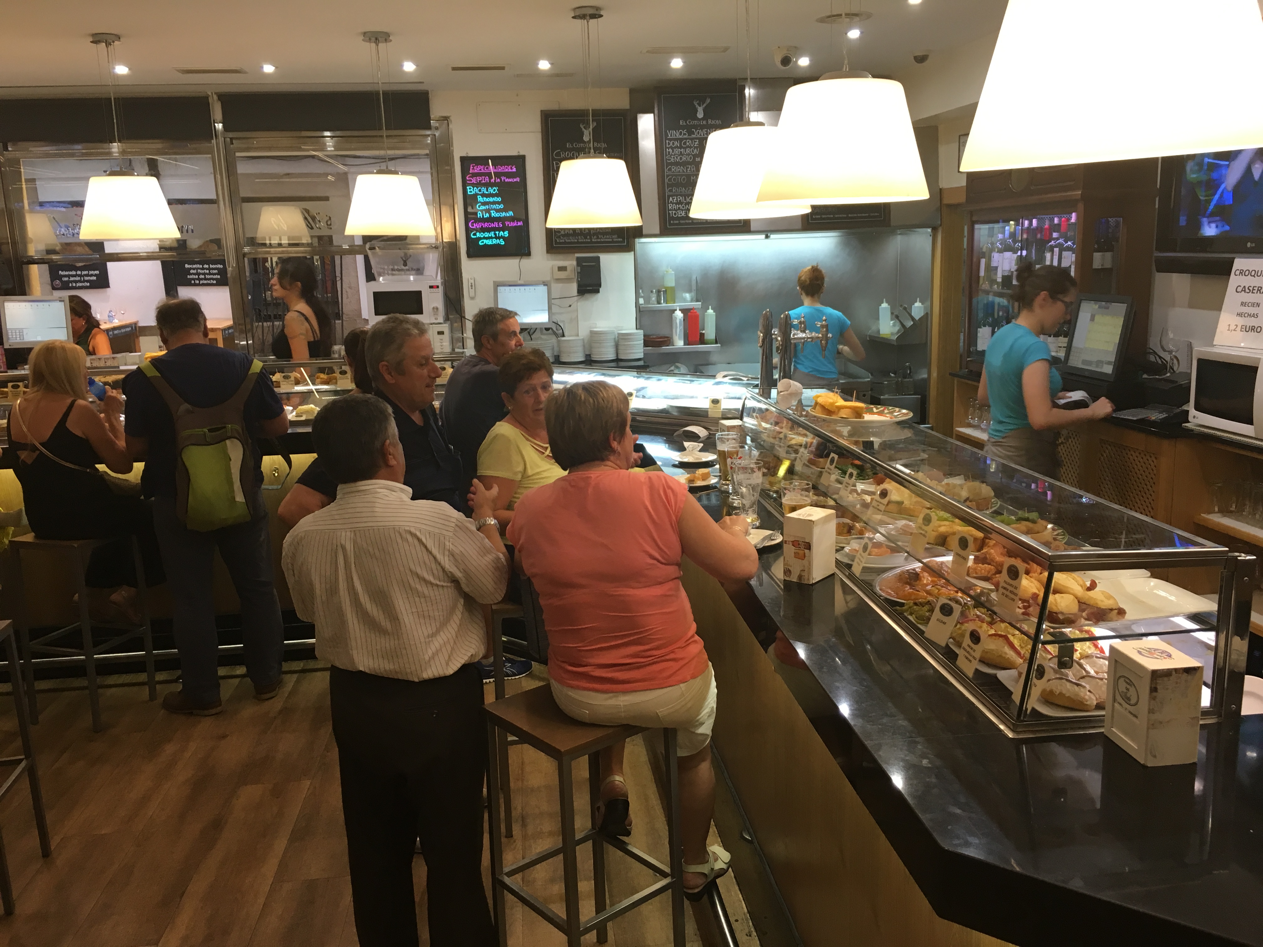 Previous Image Next Image IMG_9016 Standing room only… we split 4 different pintxos in this bar but had to stand, so we searched for another to sit down.