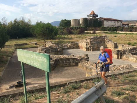 Yesterday, on the way into Navarrete we passed these ruins of an ancient hospital for pilgrims. When pilgrims began to frequent the Camino in the Middle Ages, the Church built hospitals along the way to minister to the physical and spiritual needs of pilgrims. These are the ruins of San Juan de Acre, founded in 1185 by Maria Ramirez, the mother of a bishop.
