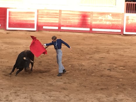 Still another bullfighter and very fast, aggressive bull.