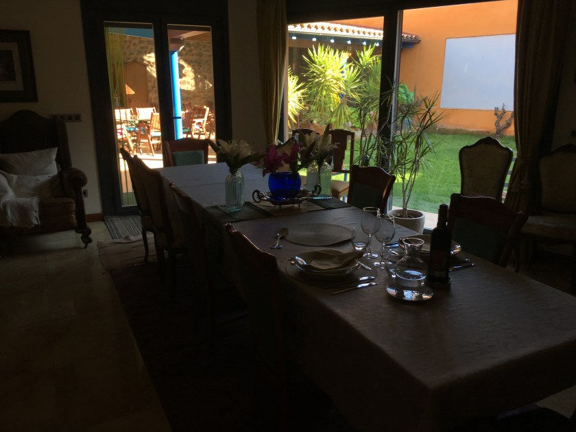 Dining room table set for us and garden outside