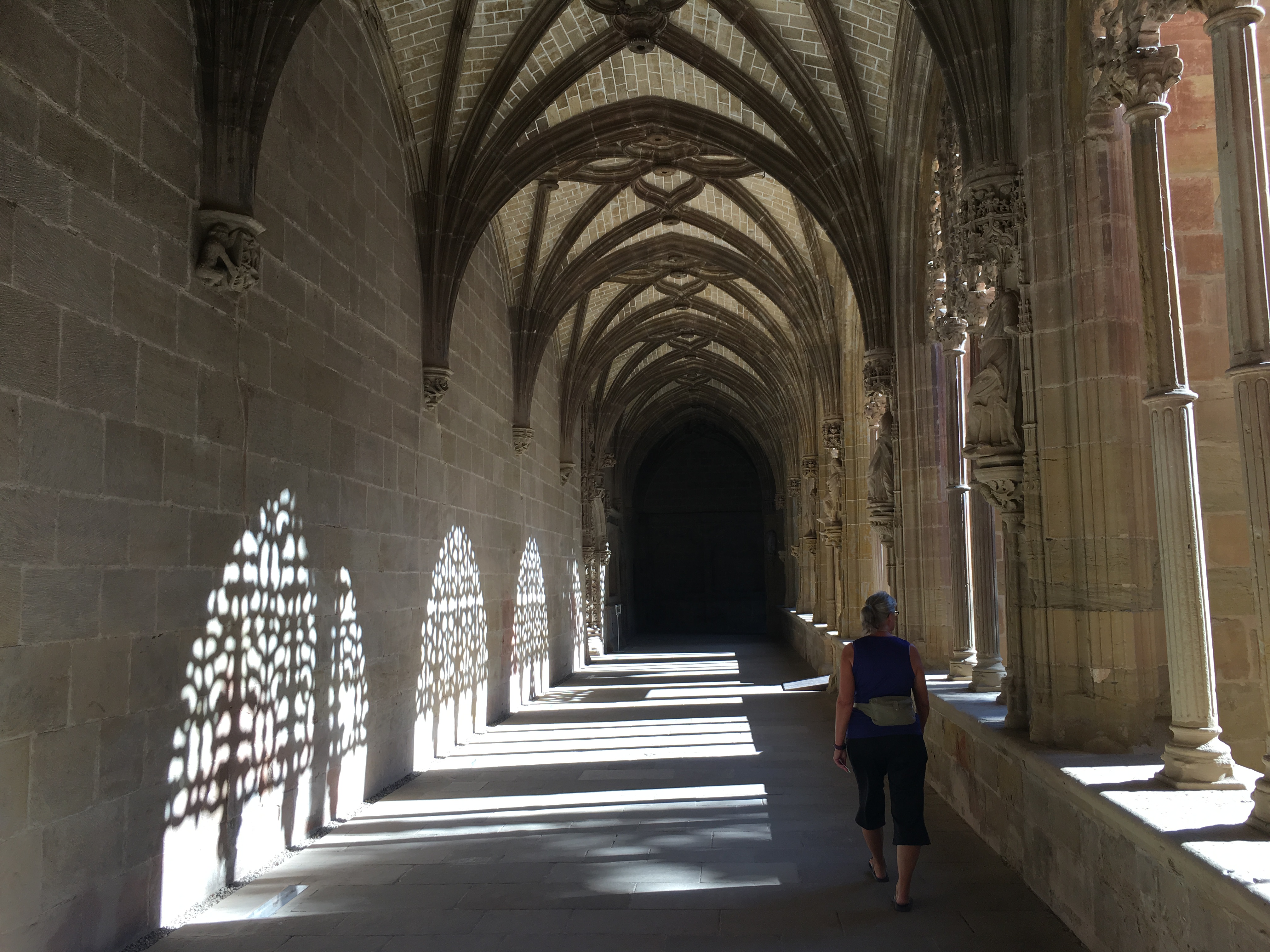 Cloister of monetary with shadows of stone “drapery”