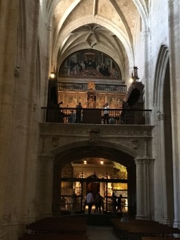 The choir loft and the entrance to the cave below.
